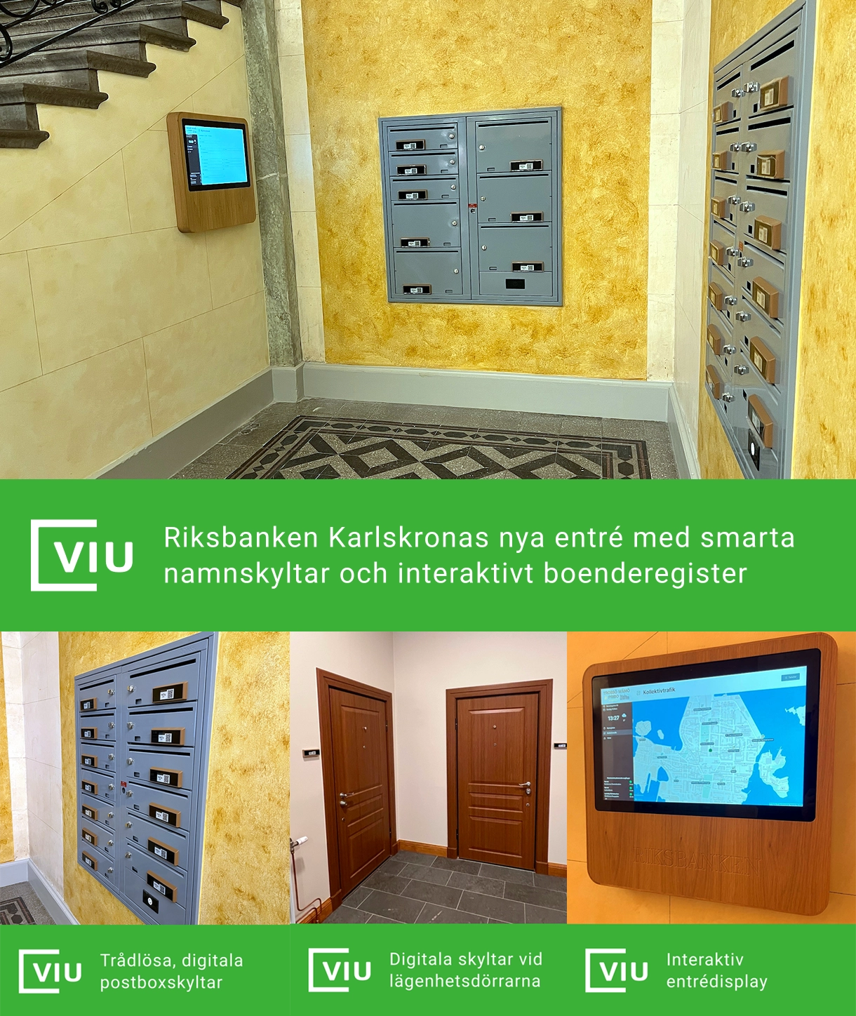 I samband med renoveringen av fastigheten Riksbanken i centrala Karlskrona kommer Viu att installera WallPads, WallTags och BoxTags.