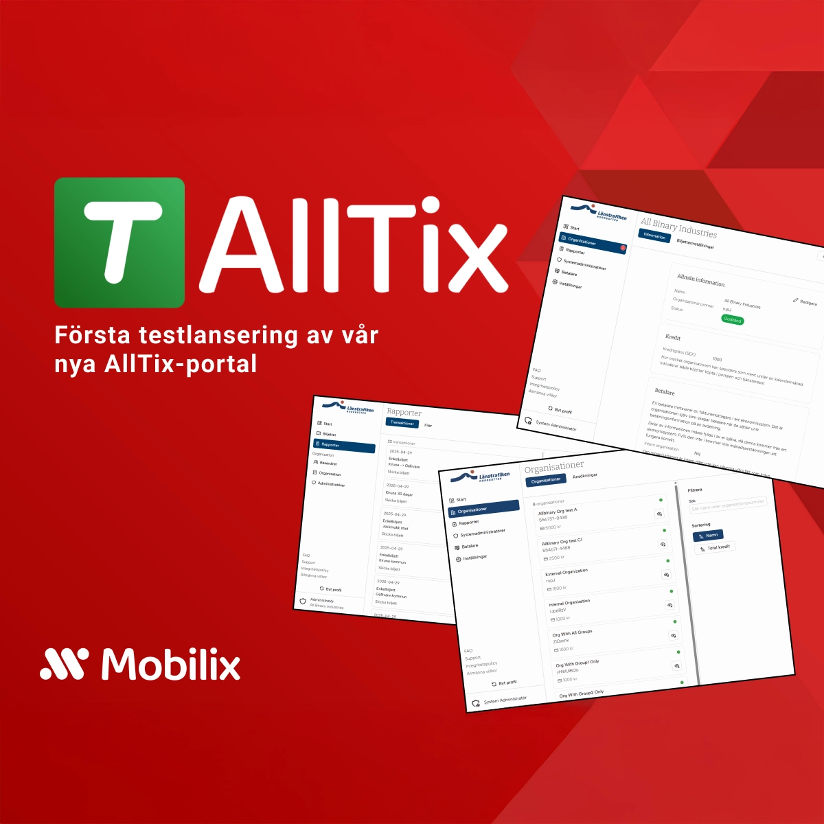 Vi har glädjen att presentera första delen av AllTix i verklig miljö – våra skol- och företagsportaler.